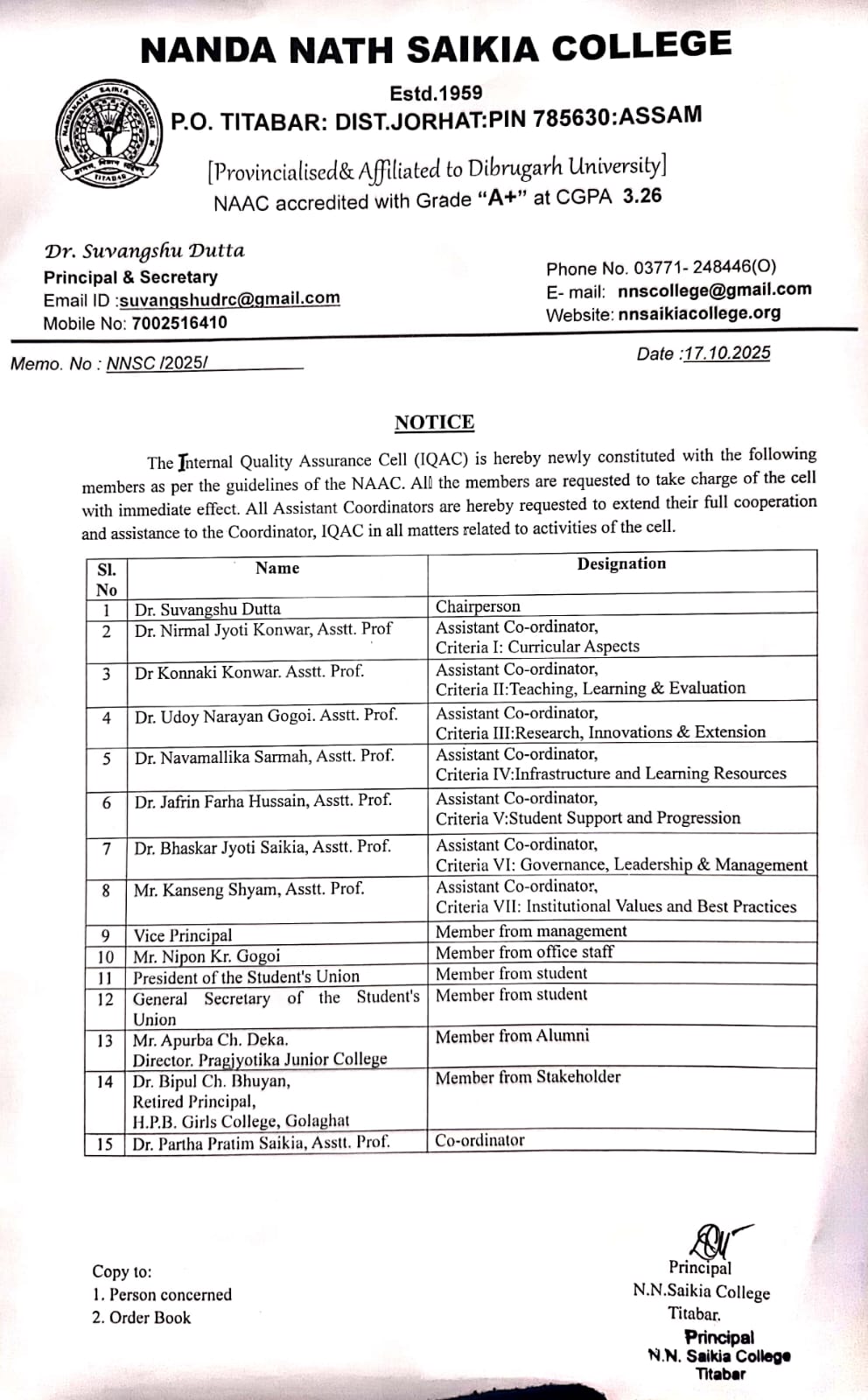 - Notification of formation of IQAC